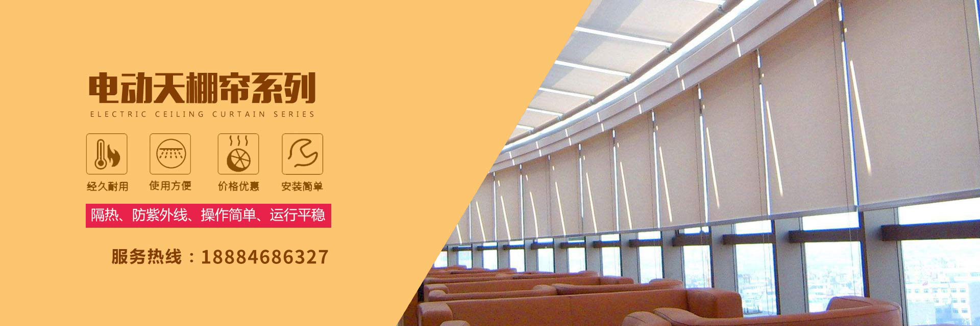 成都錦恒窗飾有限公司是一家專業從事智能化遮陽窗飾產品研發,銷售,設計,生產和安裝的企業,坐落于成都市成華區。本公司有專業的設計工程師數名對智能遮陽產品有著10多年的設計和安裝經驗,專業的施工團隊對智能遮陽產品有豐富的安裝經驗。 主營產品,電動天棚簾,中空玻璃隔斷,電動蜂巢簾,電動舞臺開合幕,電動升降,電動窗簾,電動卷簾,電動百葉簾,電動消防百葉窗,電動伸縮雨棚,電動天幕,電動香格里拉簾,電動柔... 查看更多